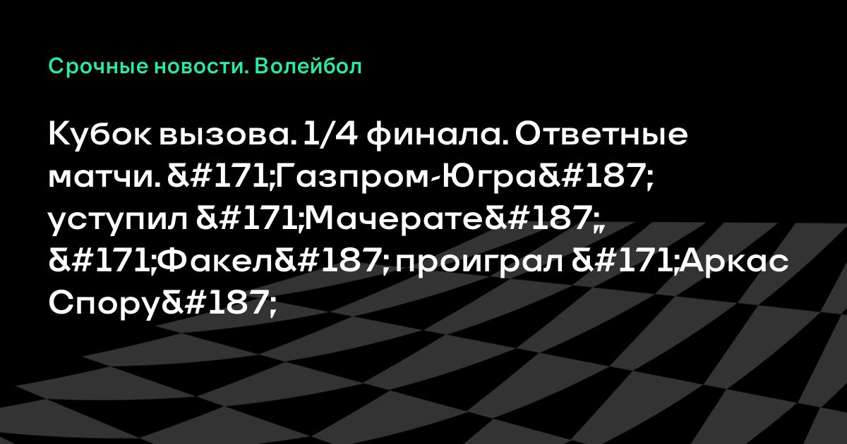 Кубок вызова. 1/4 финала. Ответные матчи. «Газпром-Югра» уступил «Мачерате», «Факел» проиграл «Аркас Спору»