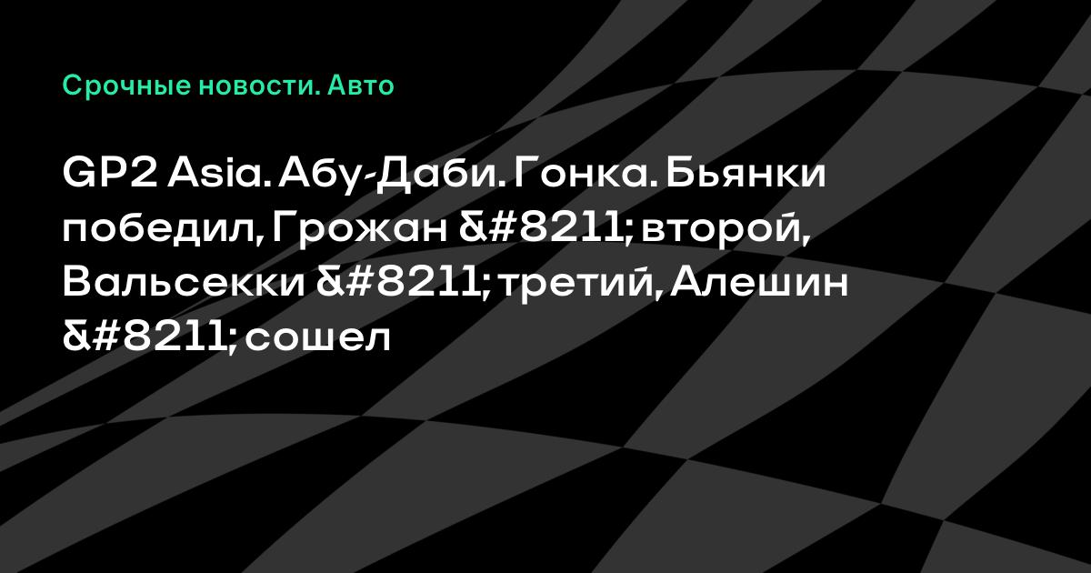 GP2 Asia. Абу-Даби. Гонка. Бьянки победил, Грожан – второй, Вальсекки – третий, Алешин – сошел
