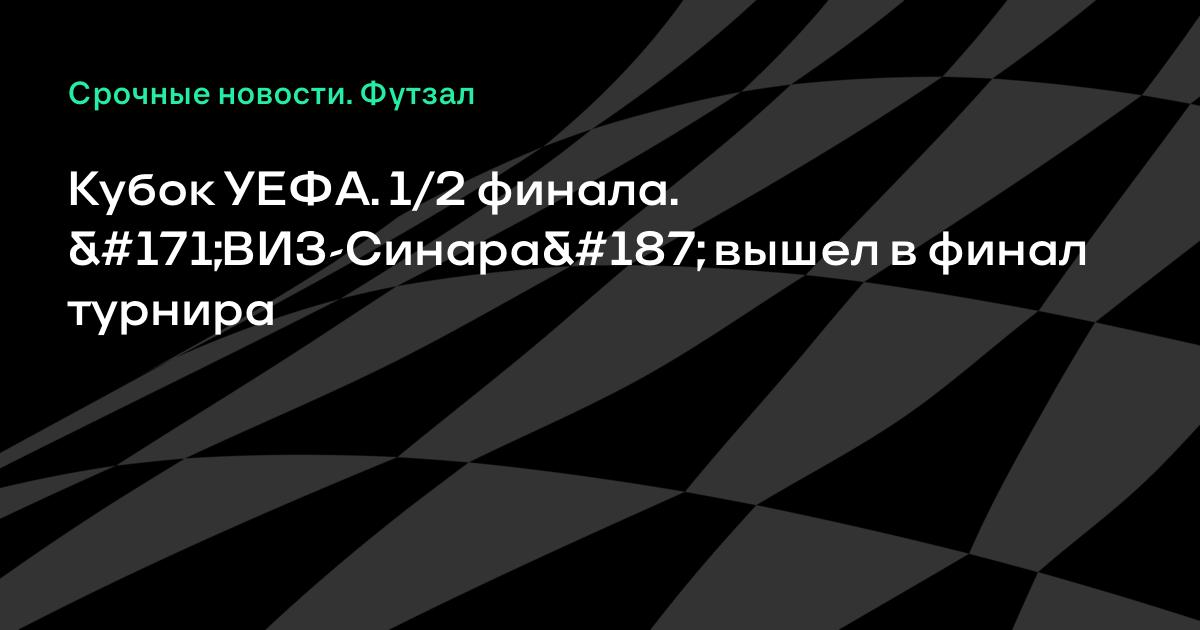24 апреля 2009, 20:05 Кубок УЕФА. 1/2 финала. «ВИЗ-Синара» вышел в финал турнира Кубок УЕФА Екатеринбург, Россия 1/2 финала ВИЗ-Синара Россия Динамо-Ямал Россия 2:0 (0:0) Кайрат Казахстан Интер-Мовистар Испания 0:5 (0:3) Футзал Синара результаты Кубок УЕФА Кайрат Динамо-Ямал Интер-Мовистар