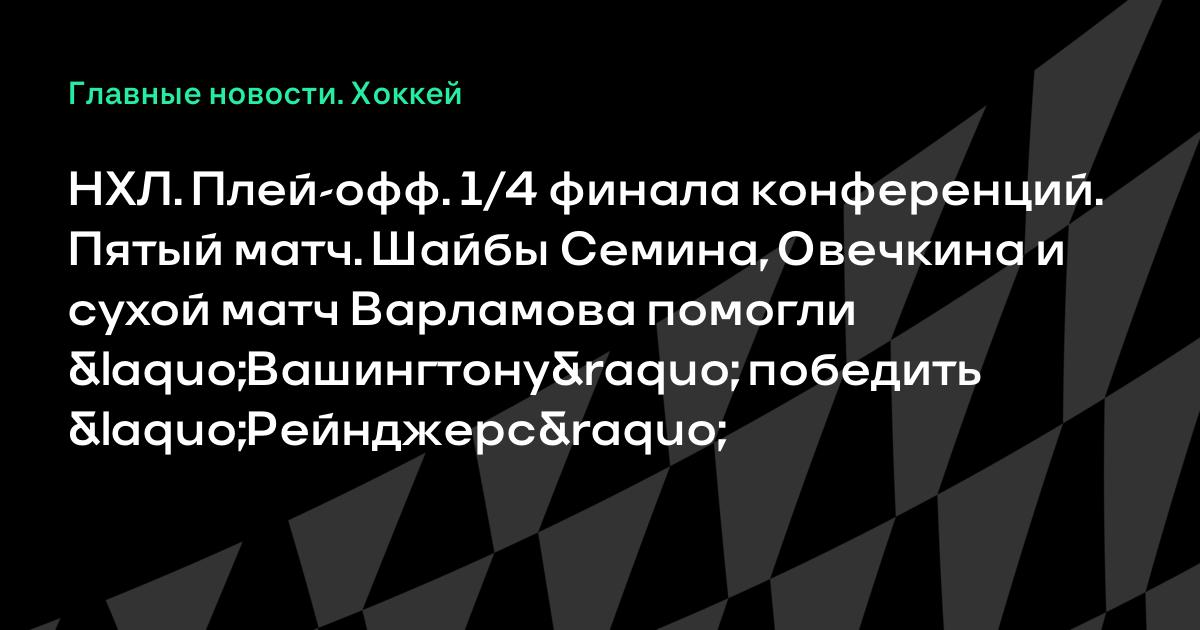 НХЛ. Плей-офф. 1/4 финала конференций. Пятый матч. Шайбы Семина, Овечкина и сухой матч Варламова помогли «Вашингтону» победить «Рейнджерс»