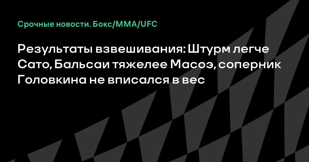 Результаты взвешивания: Штурм легче Сато, Бальсаи тяжелее Масоэ, соперник Головкина не вписался в вес