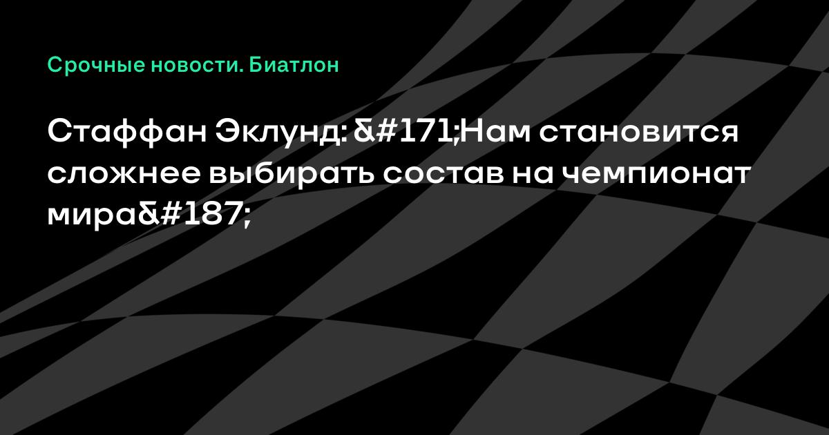 Стаффан Эклунд: «Нам становится сложнее выбирать состав на чемпионат мира»