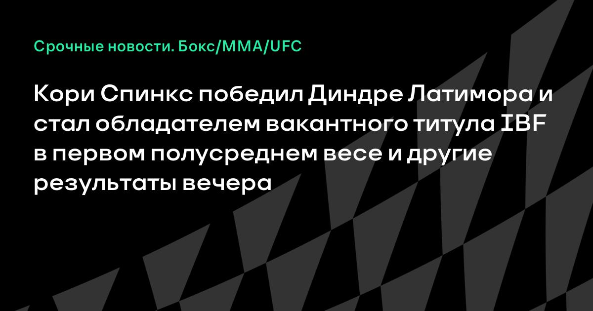 Кори Спинкс победил Диндре Латимора и стал обладателем вакантного титула IBF в первом полусреднем весе и другие результаты вечера