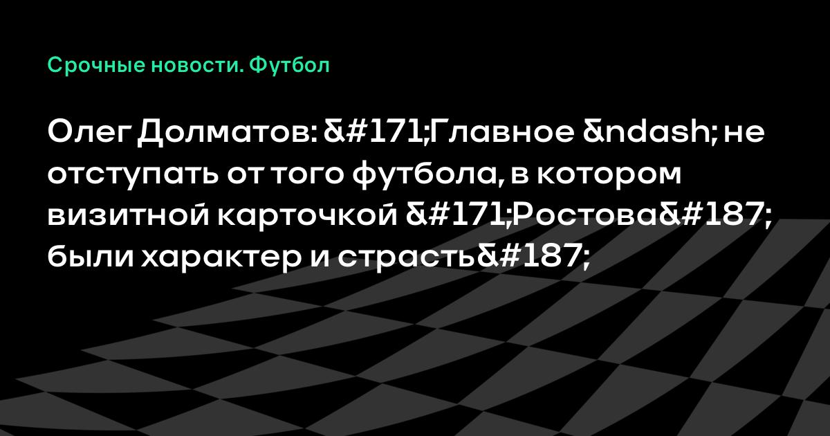Признаюсь, вариантов не много. Тем более что есть травмированные, простуженные. Прикидываю, выбираю. Главное не отступить от того футбола, в котором еще с советских времен визитной карточкой ростовчан были характер и страсть. От этого отступать никак нельзя», цитирует Долматова «Спорт-Экспресс».