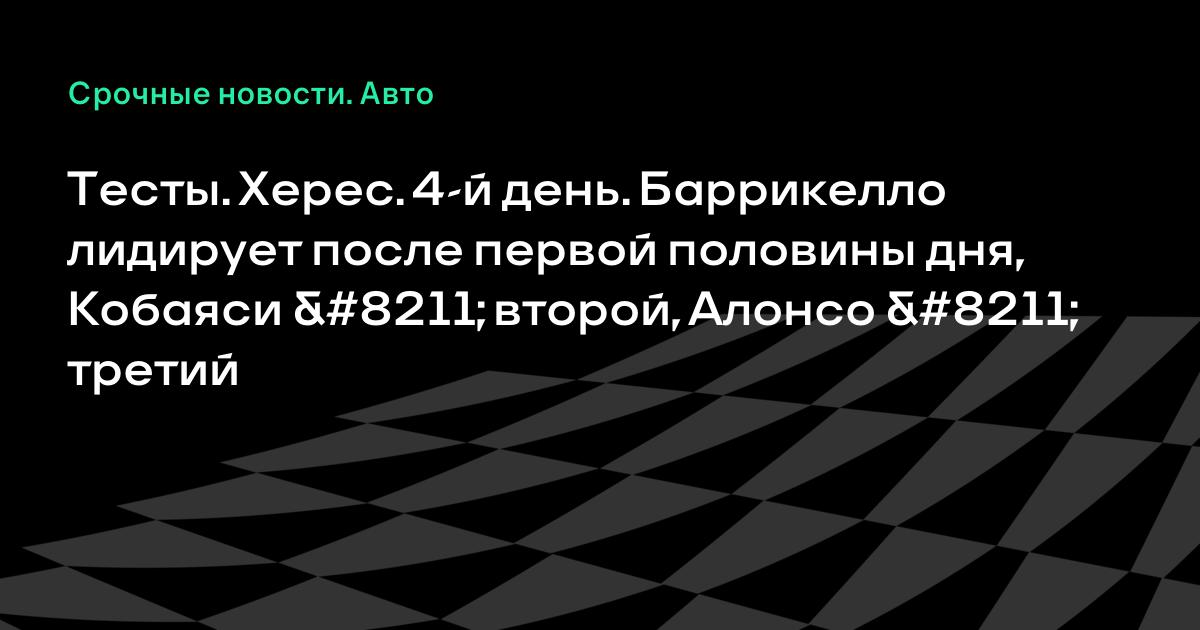 Тесты. Херес. 4-й день. Баррикелло лидирует после первой половины дня, Кобаяси – второй, Алонсо – третий