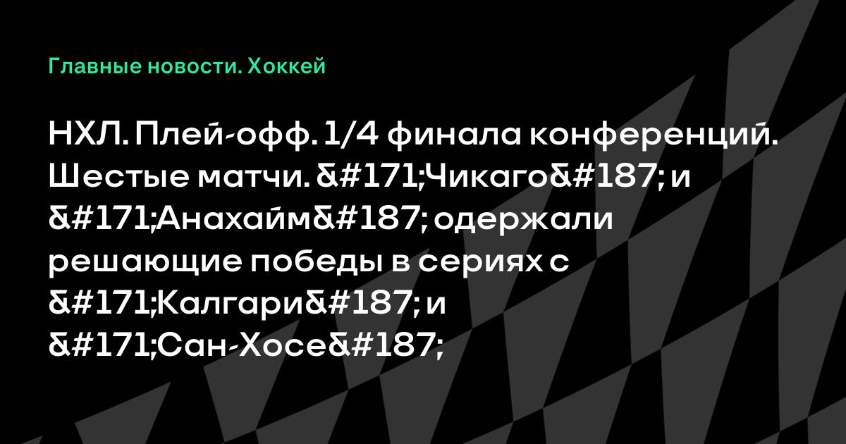 НХЛ. Плей-офф. 1/4 финала конференций. Шестые матчи. «Чикаго» и «Анахайм» одержали решающие победы в сериях с «Калгари» и «Сан-Хосе»