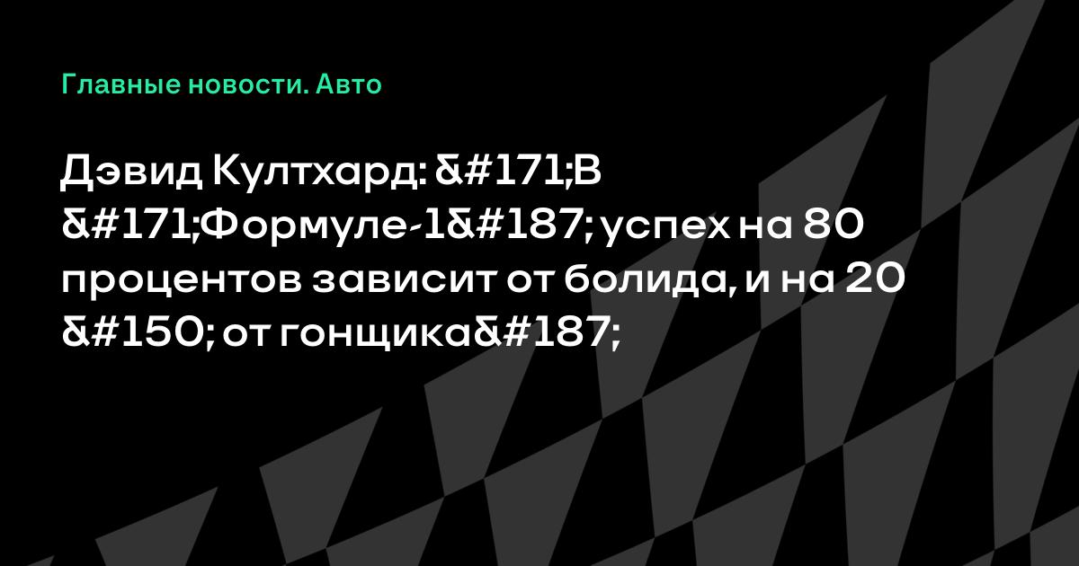 Дэвид Култхард: «В «Формуле-1» успех на 80 процентов зависит от болида, и на 20 от гонщика»