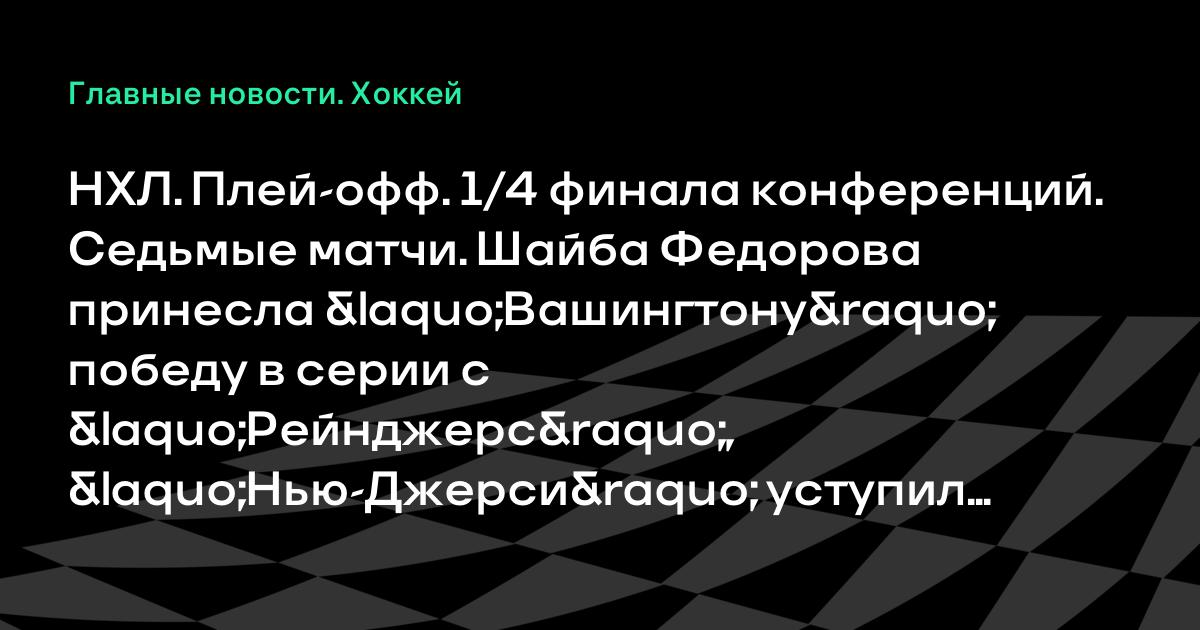 НХЛ. Плей-офф. 1/4 финала конференций. Седьмые матчи. Шайба Федорова принесла «Вашингтону» победу в серии с «Рейнджерс», «Нью-Джерси» уступил «Каролине»