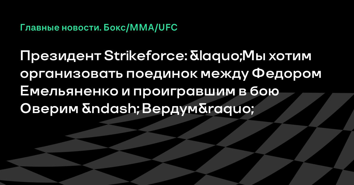 Президент Strikeforce: «Мы хотим организовать поединок между Федором Емельяненко и проигравшим в бою Оверим – Вердум»