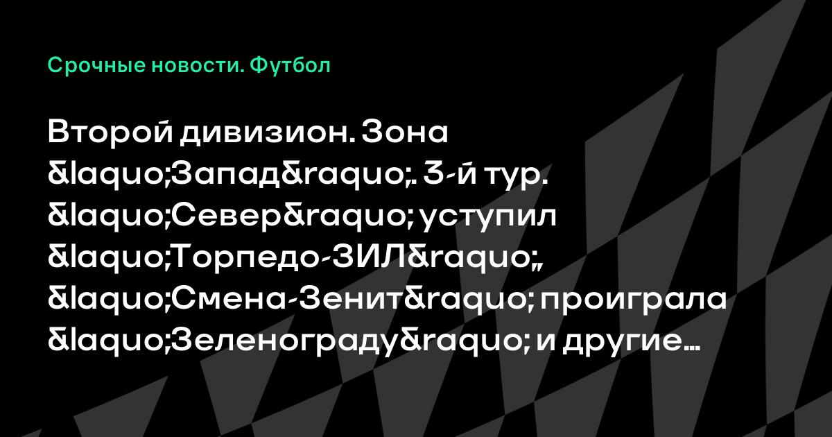 Второй дивизион. Зона «Запад». 3-й тур. «Север» уступил «Торпедо-ЗИЛ», «Смена-Зенит» проиграла «Зеленограду» и другие матчи