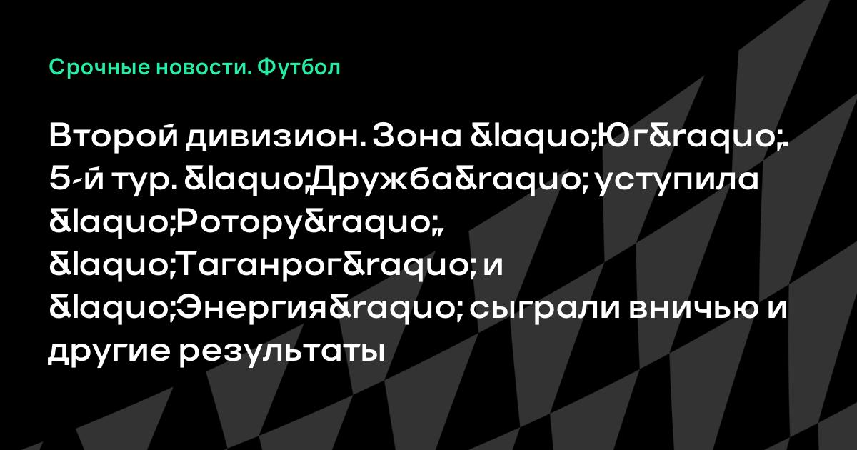 Второй дивизион. Зона «Юг». 5-й тур. «Дружба» уступила «Ротору», «Таганрог» и «Энергия» сыграли вничью и другие результаты