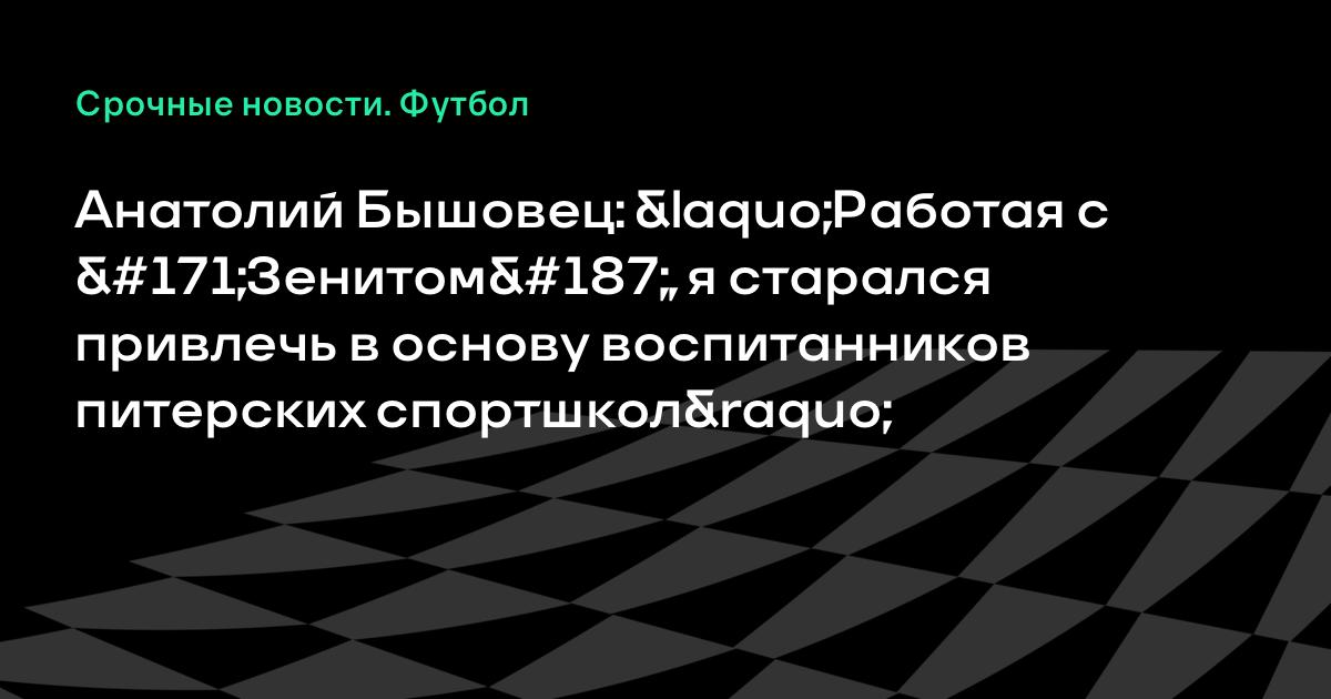 Анатолий Бышовец: «Работая с «Зенитом», я старался привлечь в основу воспитанников питерских спортшкол»