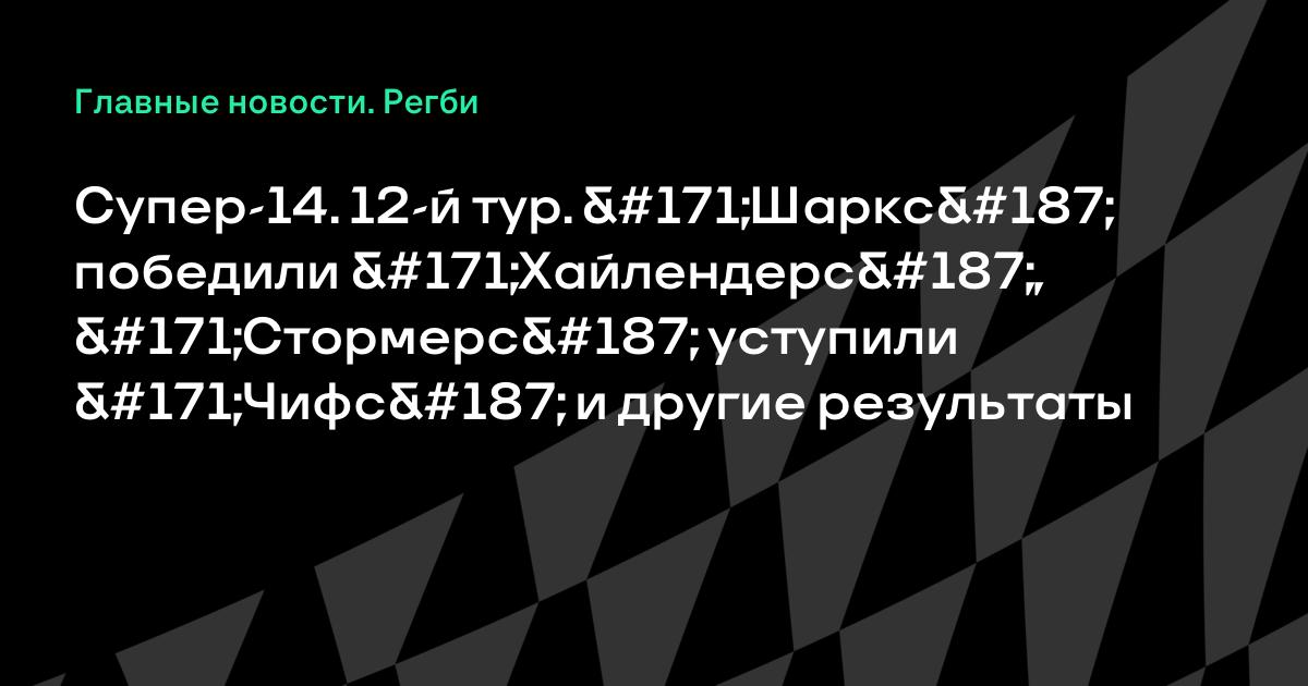 Супер-14. 12-й тур. «Шаркс» победили «Хайлендерс», «Стормерс» уступили «Чифс» и другие результаты
