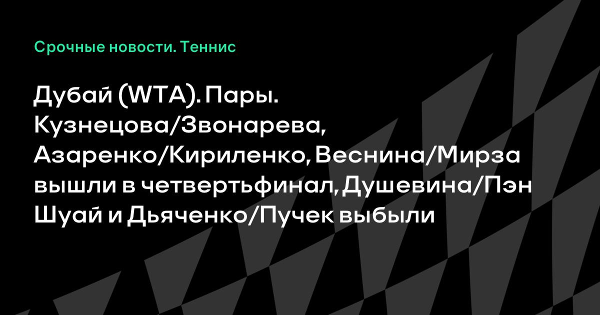 Дубай (WTA). Пары. Кузнецова/Звонарева, Азаренко/Кириленко, Веснина/Мирза вышли в четвертьфинал, Душевина/Пэн Шуай и Дьяченко/Пучек выбыли