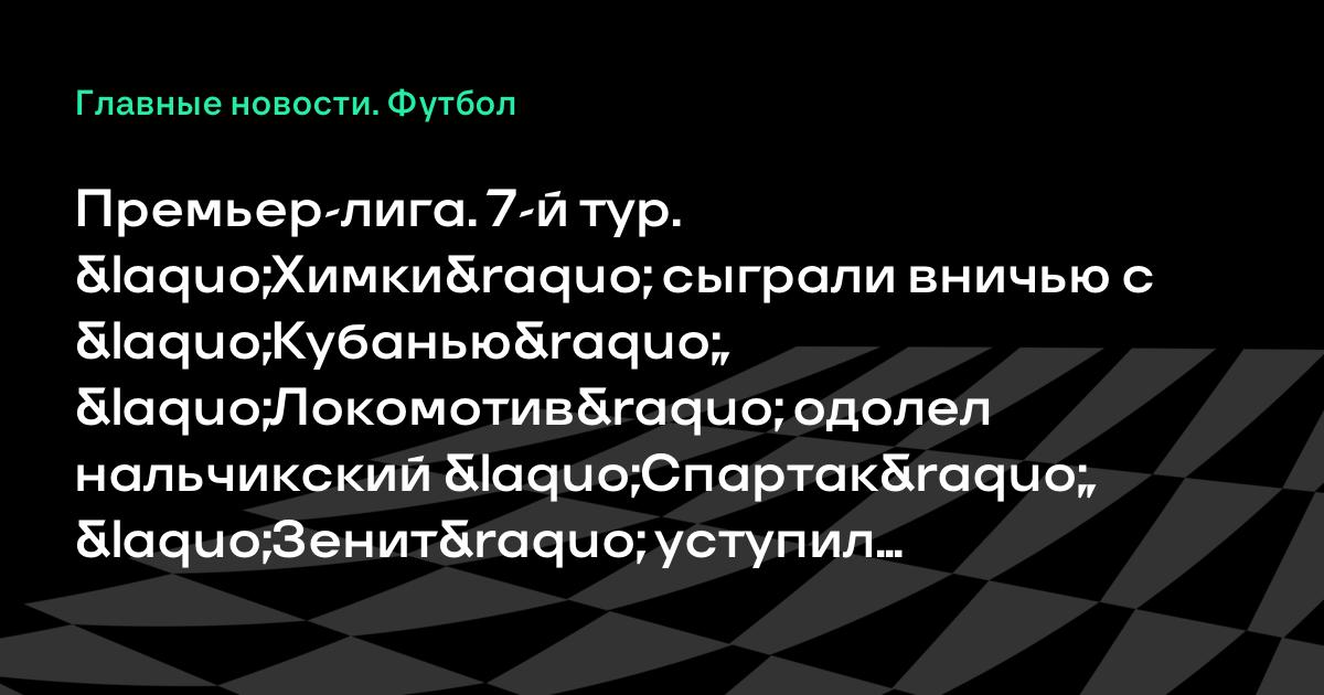 Премьер-лига. 7-й тур. «Химки» сыграли вничью с «Кубанью», «Локомотив» одолел нальчикский «Спартак», «Зенит» уступил «Ростову», ЦСКА переиграл «Крылья Советов» и другие результаты