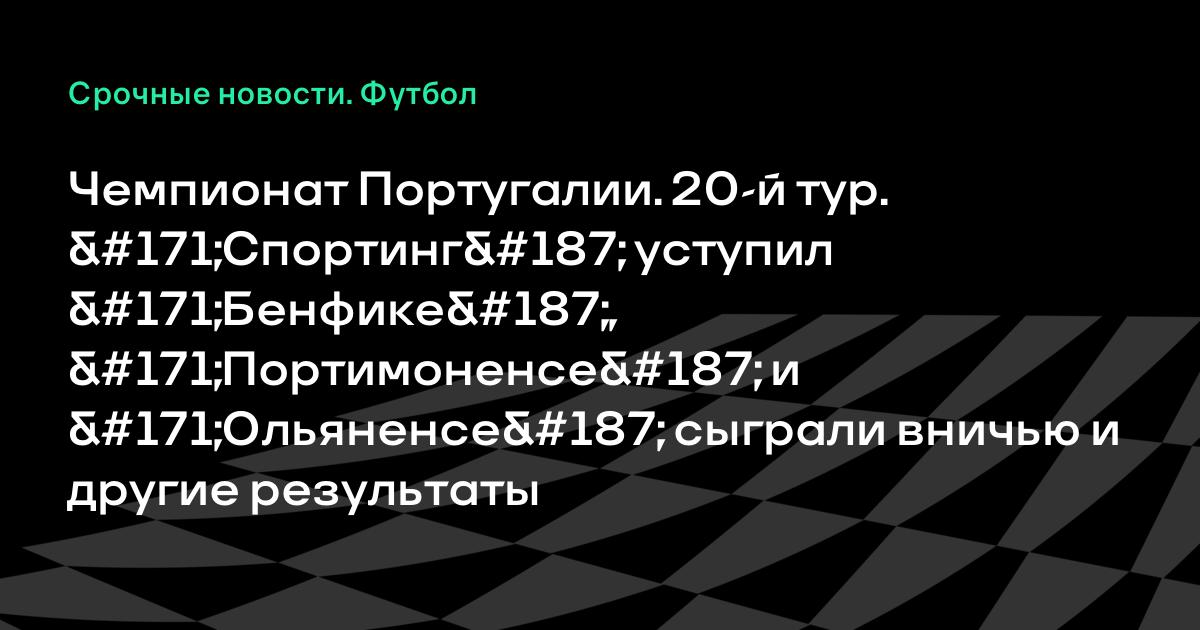 Чемпионат Португалии. 20-й тур. «Спортинг» уступил «Бенфике», «Портимоненсе» и «Ольяненсе» сыграли вничью и другие результаты