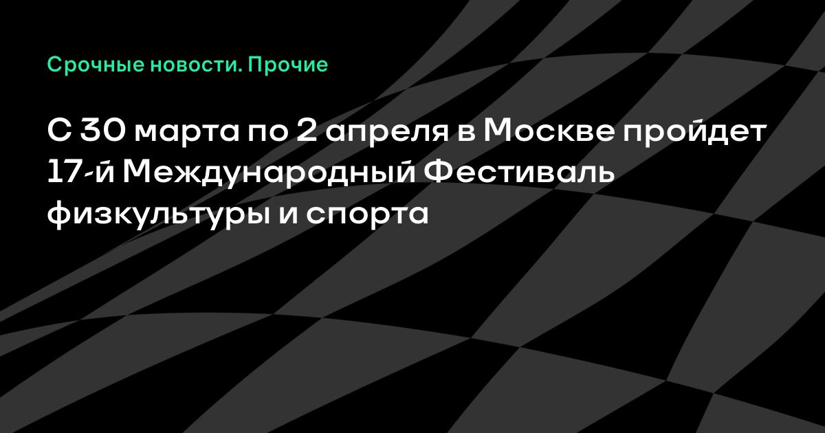 С 30 марта по 2 апреля в Москве пройдет 17-й Международный Фестиваль физкультуры и спорта