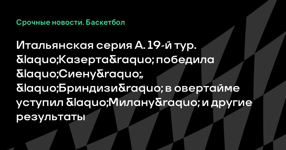 Итальянская серия А. 19-й тур. «Казерта» победила «Сиену», «Бриндизи» в овертайме уступил «Милану» и другие результаты