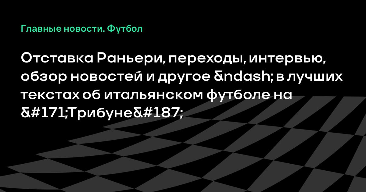 Отставка Раньери, переходы, интервью, обзор новостей и другое – в лучших текстах об итальянском футболе на «Трибуне»