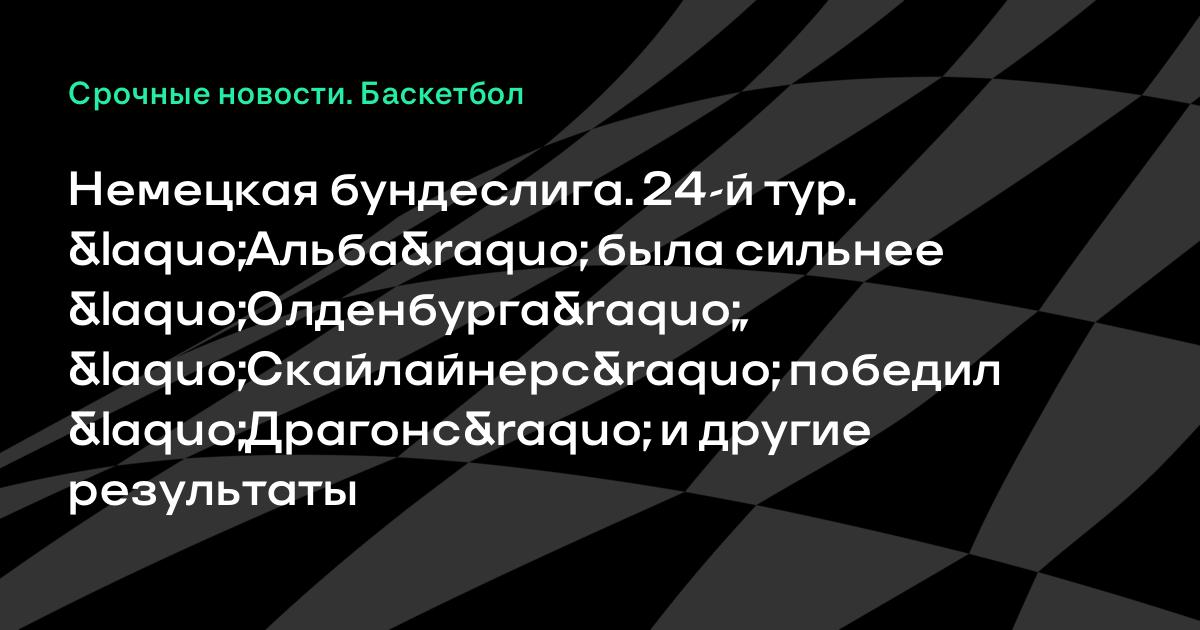 Немецкая бундеслига. 24-й тур. «Альба» была сильнее «Олденбурга», «Скайлайнерс» победил «Драгонс» и другие результаты