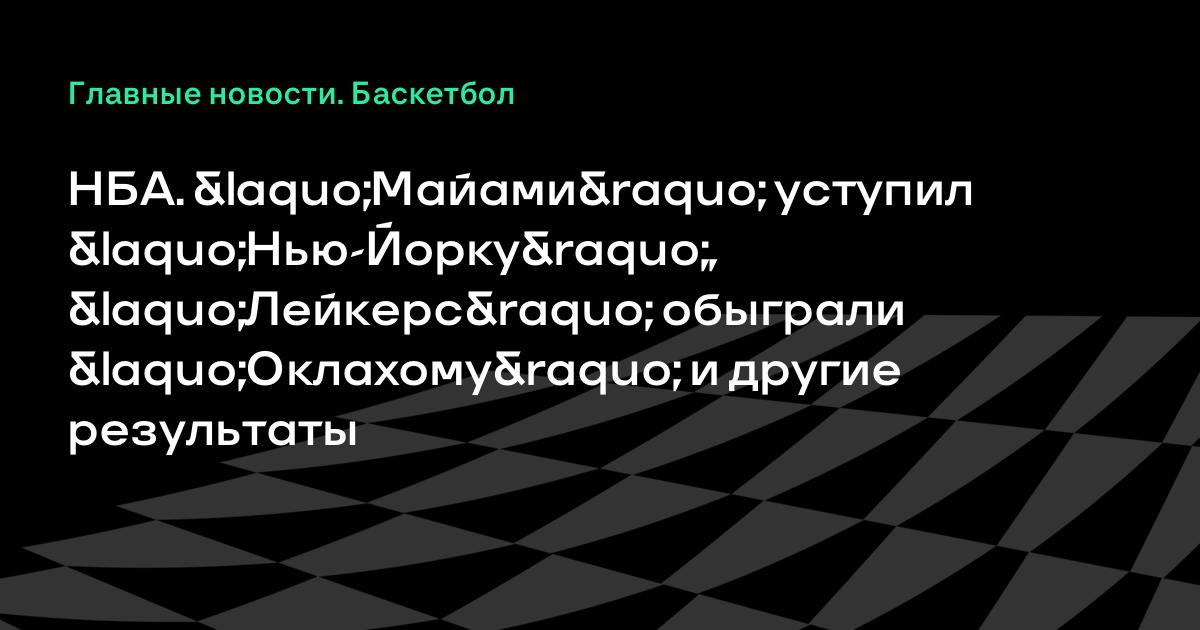 НБА. «Майами» уступил «Нью-Йорку», «Лейкерс» обыграли «Оклахому» и другие результаты