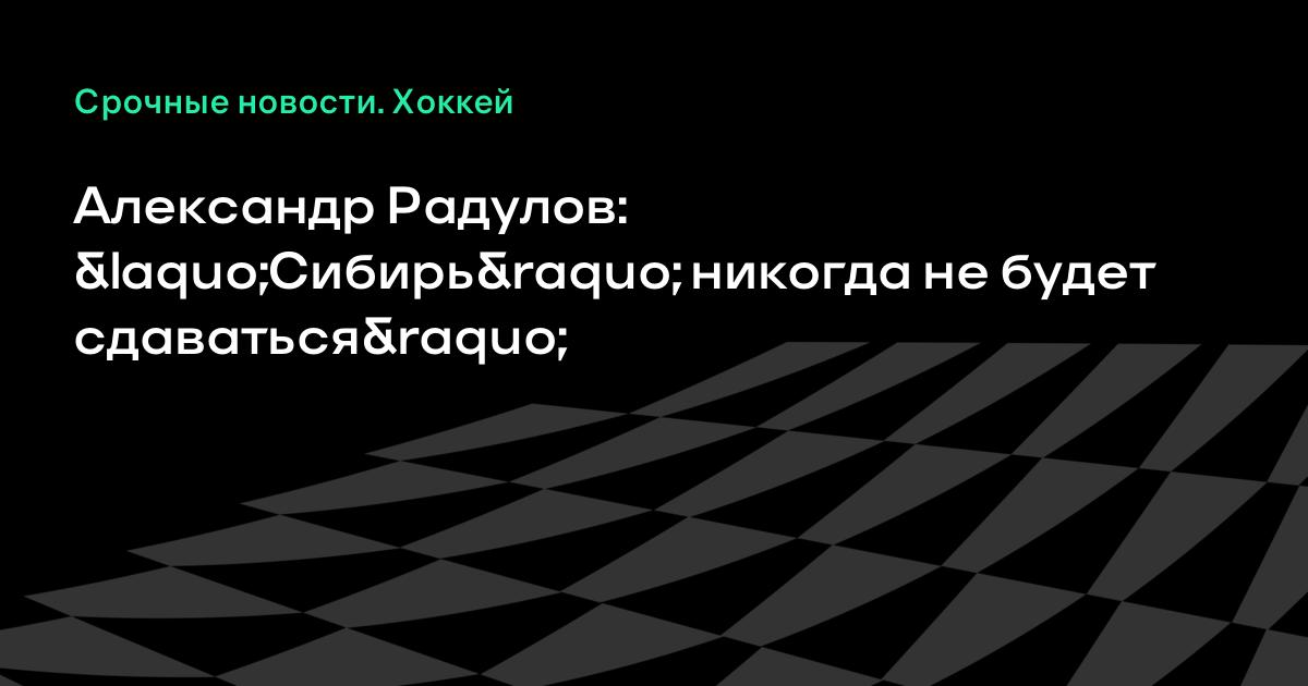 Александр Радулов: «Сибирь» никогда не будет сдаваться»