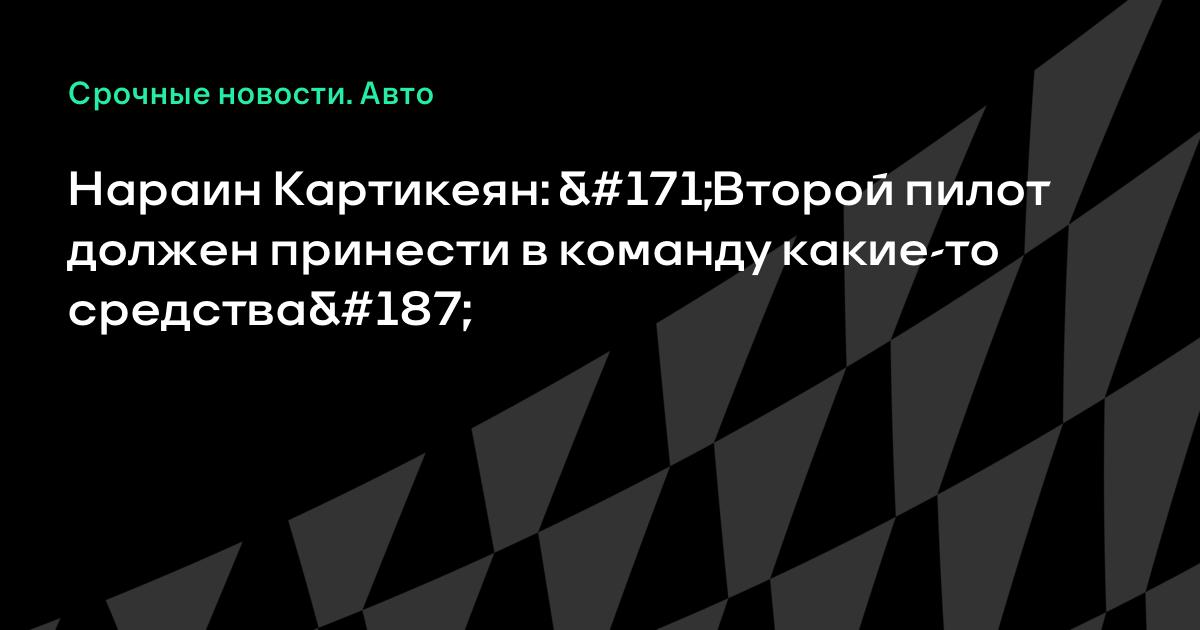 Нараин Картикеян: «Второй пилот должен принести в команду какие-то средства»