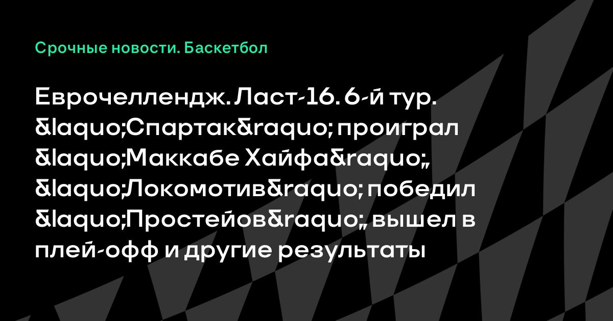 Еврочеллендж. Ласт-16. 6-й тур. «Спартак» проиграл «Маккабе Хайфа», «Локомотив» победил «Простейов», вышел в плей-офф и другие результаты