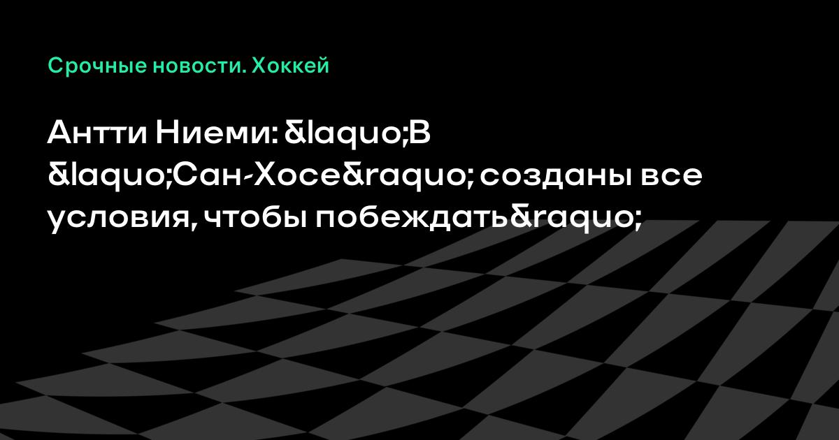Антти Ниеми: «В «Сан-Хосе» созданы все условия, чтобы побеждать»