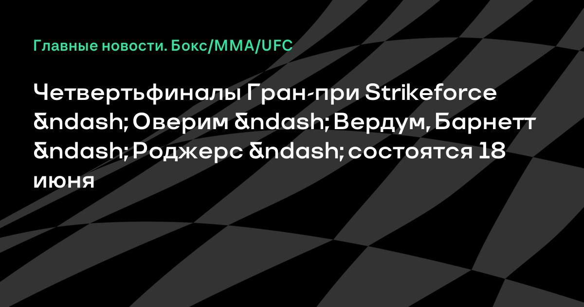Четвертьфиналы Гран-при Strikeforce – Оверим – Вердум, Барнетт – Роджерс – состоятся 18 июня