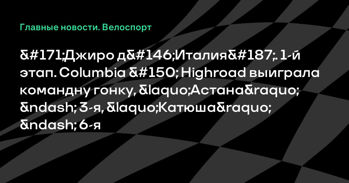 «Джиро дИталия». 1-й этап. Columbia Highroad выиграла командну гонку, «Астана» – 3-я, «Катюша» – 6-я