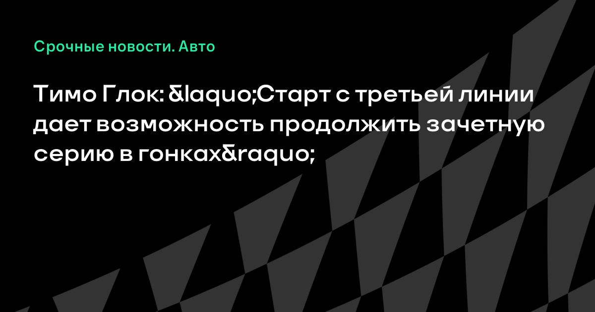 Естественно, мы хотели бы быть чуть ближе к лидерам, но соперники прогрессируют, и конкуренция ужесточается. Я набирал очки во всех гонках этого сезона, и старт с третьей линии дает мне возможность продолжить эту серию. Финишировать на подиуме будет нелегко, но я буду изо всех сил бороться за позиции. Посмотрим, что произойдет в гонке», сказал Тимо для пресс-службы конюшни.