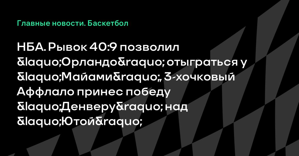 НБА. Рывок 40:9 позволил «Орландо» отыграться у «Майами», 3-хочковый Аффлало принес победу «Денверу» над «Ютой»