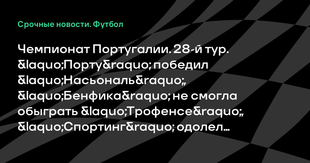 Чемпионат Португалии. 28-й тур. «Порту» победил «Насьональ», «Бенфика» не смогла обыграть «Трофенсе», «Спортинг» одолел «Сетубал»