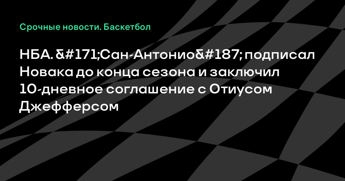 НБА. «Сан-Антонио» подписал Новака до конца сезона и заключил 10-дневное соглашение с Отиусом Джефферсом