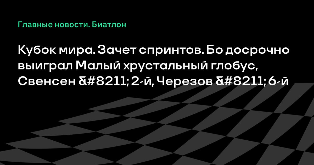Кубок мира. Зачет спринтов. Бо досрочно выиграл Малый хрустальный глобус, Свенсен – 2-й, Черезов – 6-й