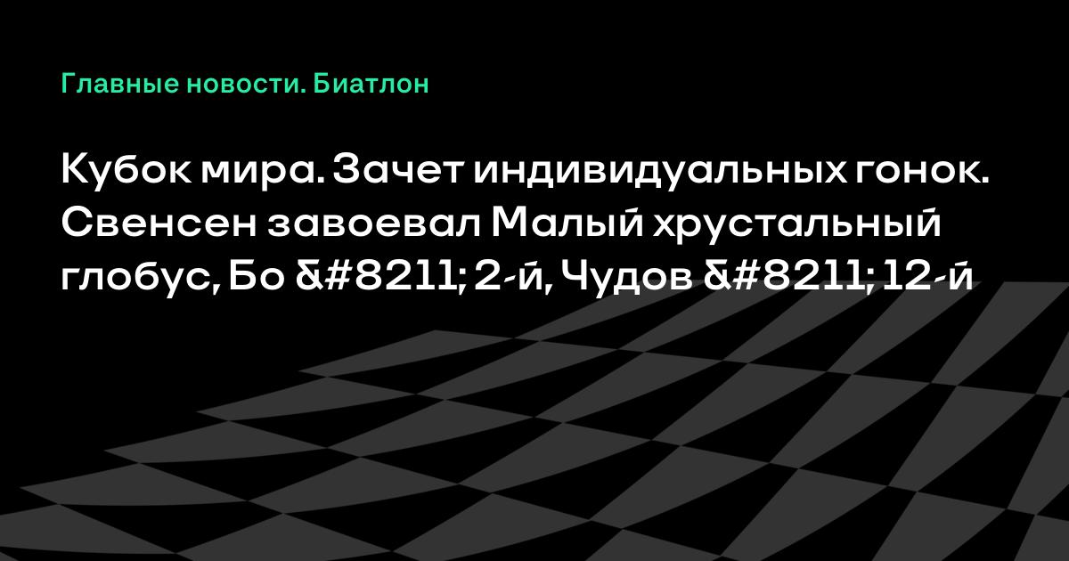 Кубок мира. Зачет индивидуальных гонок. Свенсен завоевал Малый хрустальный глобус, Бо – 2-й, Чудов – 12-й
