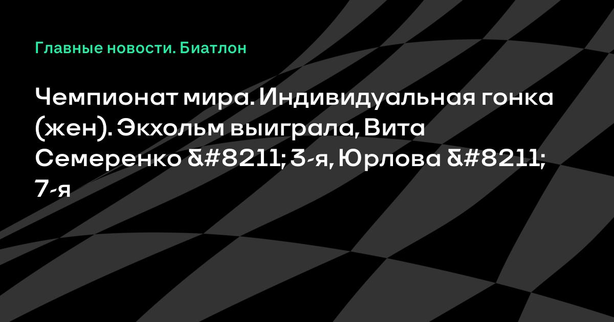 Чемпионат мира. Индивидуальная гонка (жен). Экхольм выиграла, Вита Семеренко – 3-я, Юрлова – 7-я