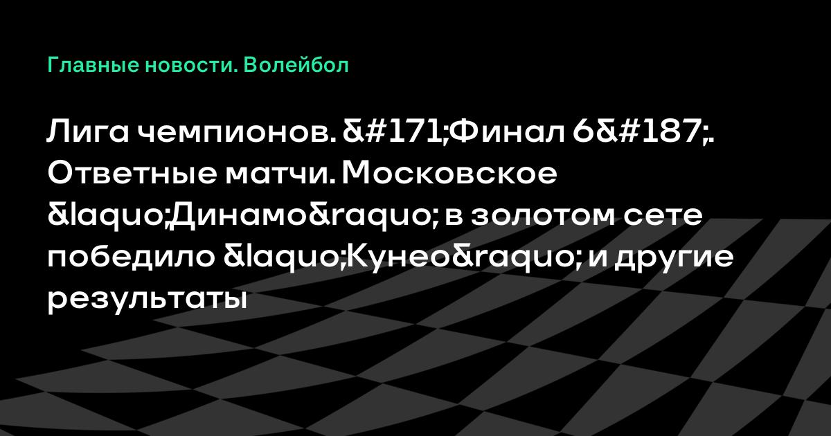 Лига чемпионов. «Финал 6». Ответные матчи. Московское «Динамо» в золотом сете победило «Кунео» и другие результаты