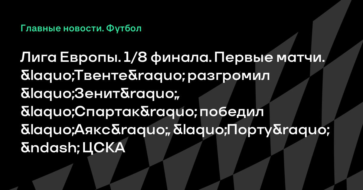 Лига Европы. 1/8 финала. Первые матчи. «Твенте» разгромил «Зенит», «Спартак» победил «Аякс», «Порту» – ЦСКА