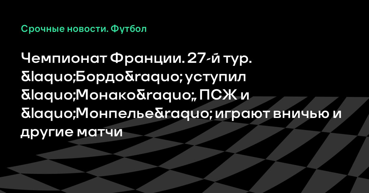 Чемпионат Франции. 27-й тур. «Бордо» уступил «Монако», ПСЖ и «Монпелье» играют вничью и другие матчи