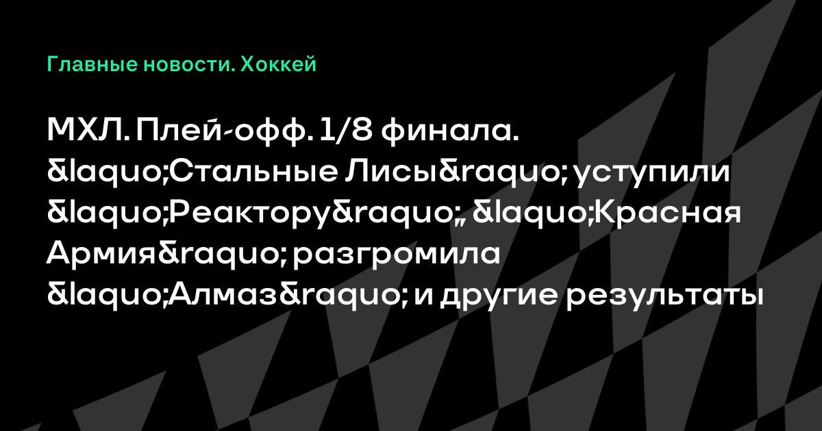 МХЛ. Плей-офф. 1/8 финала. «Стальные Лисы» уступили «Реактору», «Красная Армия» разгромила «Алмаз» и другие результаты