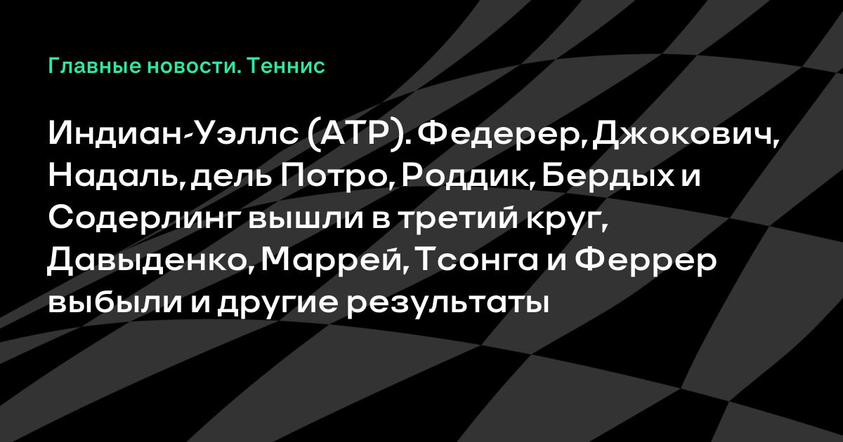 Индиан-Уэллс (АТР). Федерер, Джокович, Надаль, дель Потро, Роддик, Бердых и Содерлинг вышли в третий круг, Давыденко, Маррей, Тсонга и Феррер выбыли и другие результаты