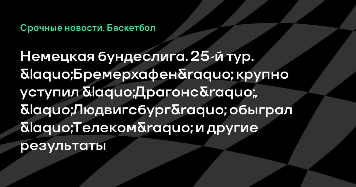 Немецкая бундеслига. 25-й тур. «Бремерхафен» крупно уступил «Драгонс», «Людвигсбург» обыграл «Телеком» и другие результаты