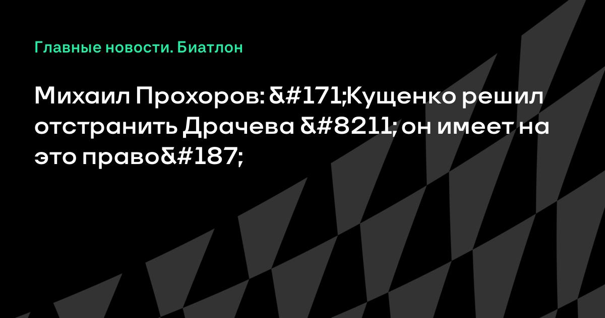 Не очень понимаю детали и саму суть возникшего конфликта с Драчевым – об этом лучше спросить у участников события. Лично я даже самого Драчева с тех пор не видел. Все это выглядит довольно смешно. Мое личное отношение к Драчеву – он неплохой парень, но не очень организованный. Но я к нему отношусь очень хорошо. Решил Кущенко его отстранить – он имеет на это право. Мне кажется, что выносить сор из избы по такому поводу просто смешно», – рассказал Прохоров в интервью «Евроспорту».