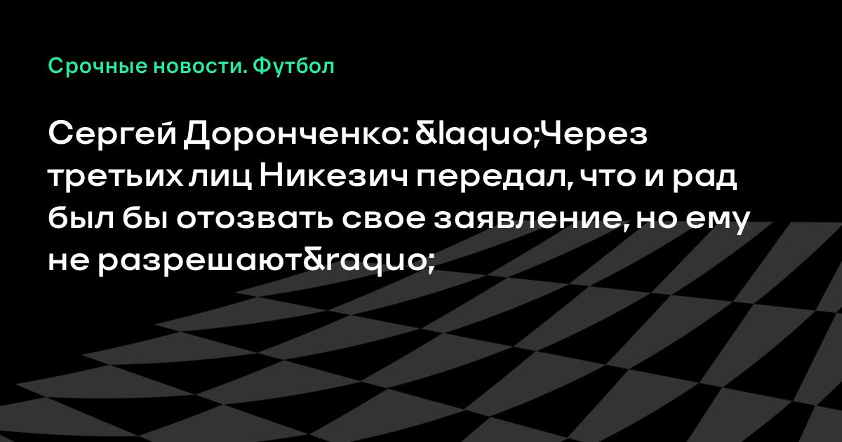 Сергей Доронченко: «Через третьих лиц Никезич передал, что и рад был бы отозвать свое заявление, но ему не разрешают»
