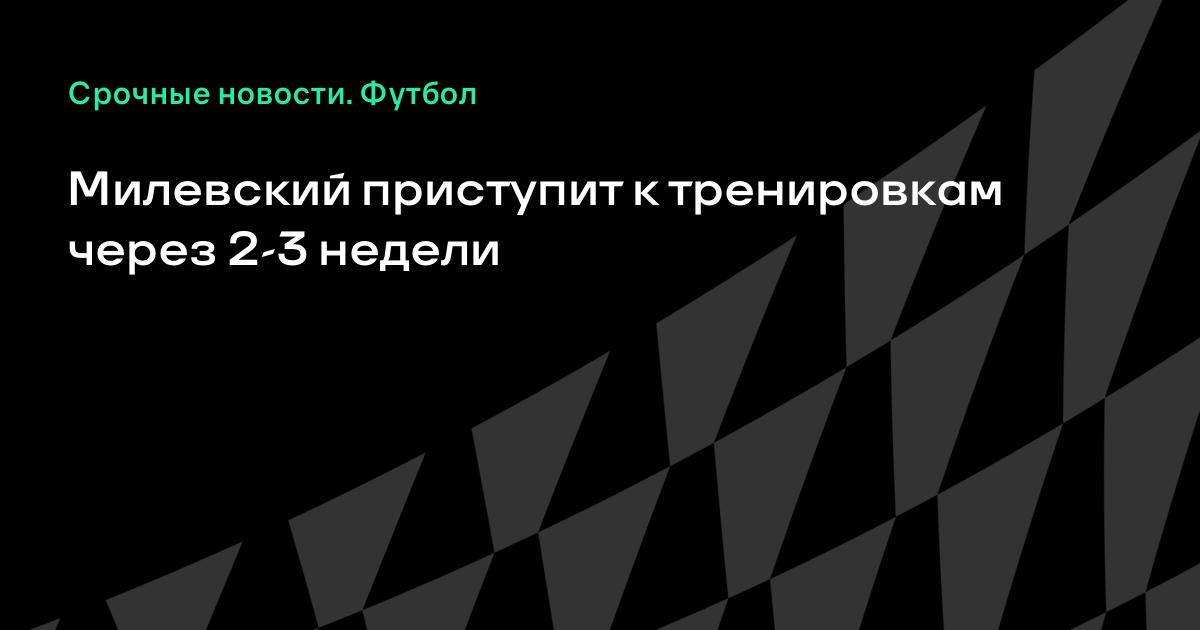 Все восстановительные процедуры нападающий будет проходить на клубной базе. Как скоро Милевский вернется на поле, будет зависеть от его общего состояния. Предполагается, что динамовец возобновит тренировки через 2-3 недели, сообщает «Спорт-Экспресс в Украине».