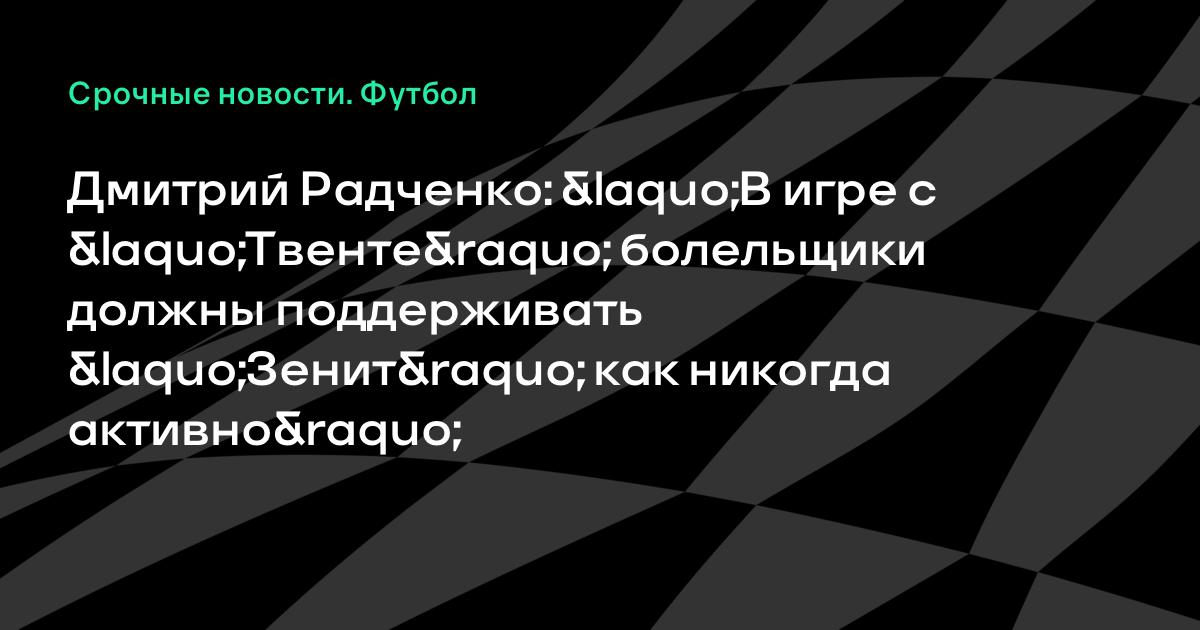 Известный в прошлом нападающий, а ныне тренер академии «Зенита» Дмитрий Радченко заявил, что у петербургского клуба есть шансы по сумме двух матчей пройти «Твенте» в 1/8 финала Лиги Европы, но для этого ему понадобится поддержка болельщиков.