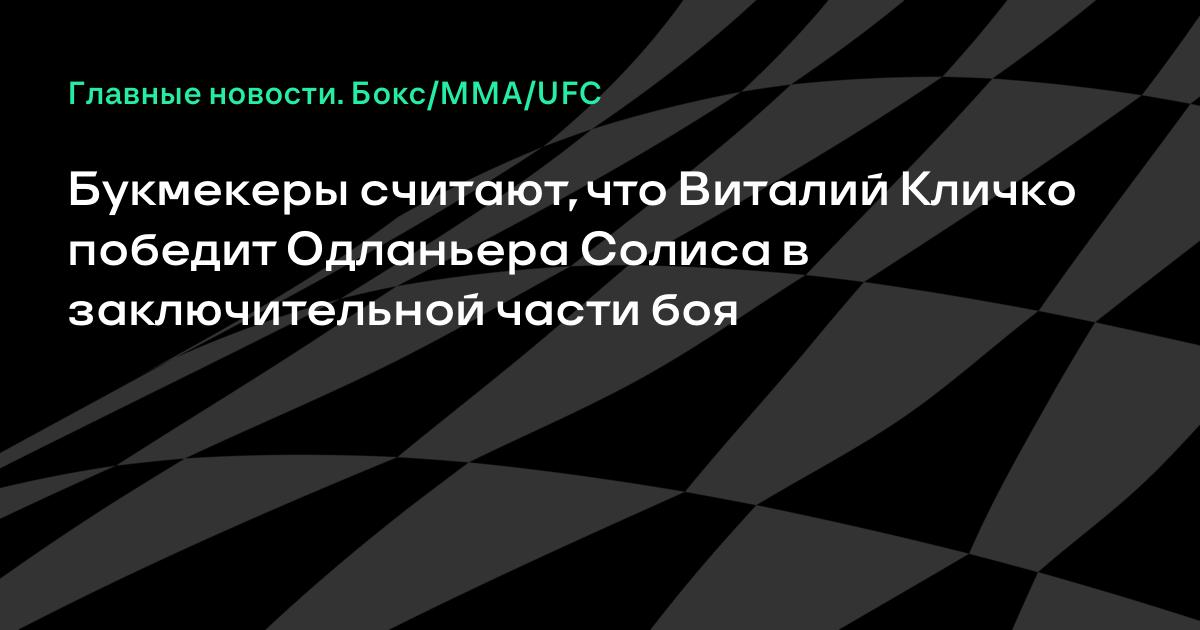 Букмекеры предсказывают досрочную победу чемпиона мира в супертяжелом весе украинца Виталия Кличко над кубинцем Одланьером Солисом в заключительной части 12-раундового боя.