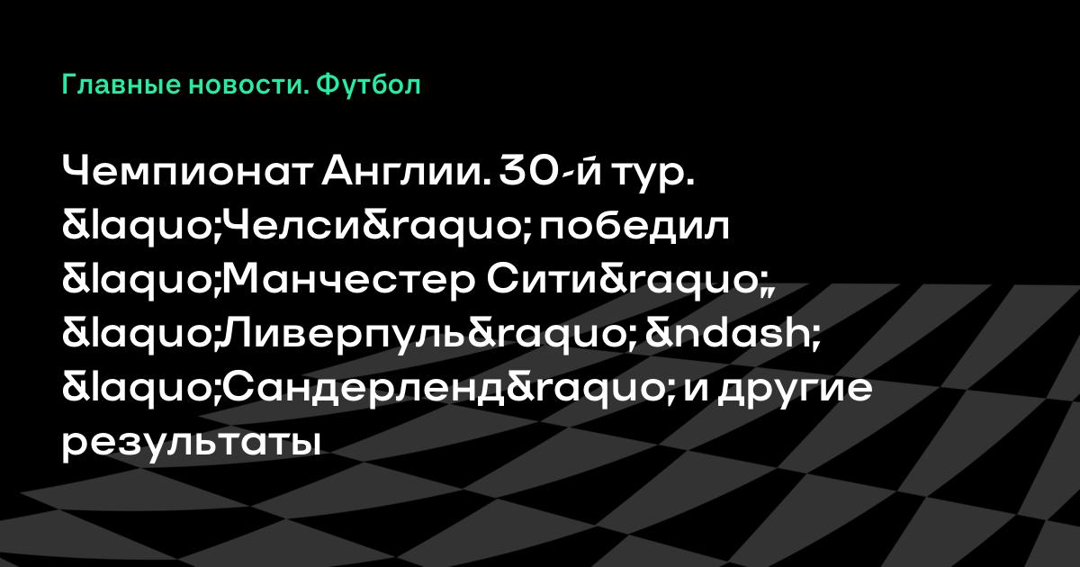 Чемпионат Англии. 30-й тур. «Челси» победил «Манчестер Сити», «Ливерпуль» – «Сандерленд» и другие результаты